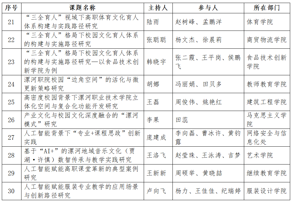 立项课题自公布之日起即须启动研究工作,研究成果应包含翔实可靠的研究数据,成果形式为研究报告(摘要600字以内、具体内容6000字以上)以及其他有显示度的教学或管理成果等。所有立项课题研究成果归学校所有。成果须于2026年4月10日前提交至科研处,进行结项验收。请各课题主持人认真执行相关规定,做好课题研究的组织实施工作。